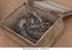 We all stepped off the platform away from the box. I watched, completely horrified, as one of the deacons reached into the box, shuffled the snakes around, and pulled out the most prominent, longest snake in the box (I am sure of it). It was not happy – at all!